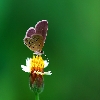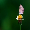 Small butterfly sitting on a flower with opening wings