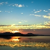 Sun set reflection at water with shining cloud formation