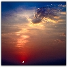 Red Sun rise with blue sky yellow clouds