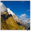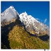 Huge ice covered Himalayan peaks on the way to Keylong from Manali